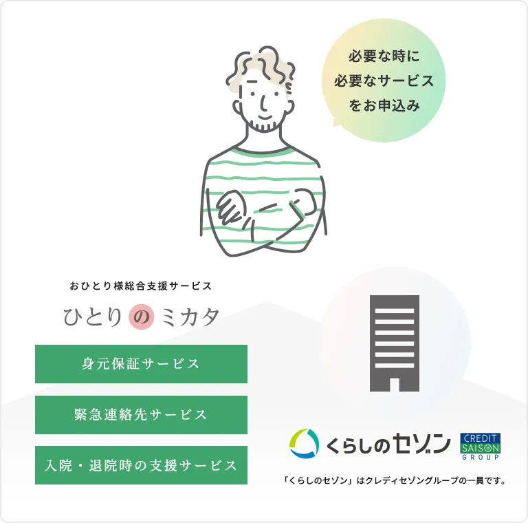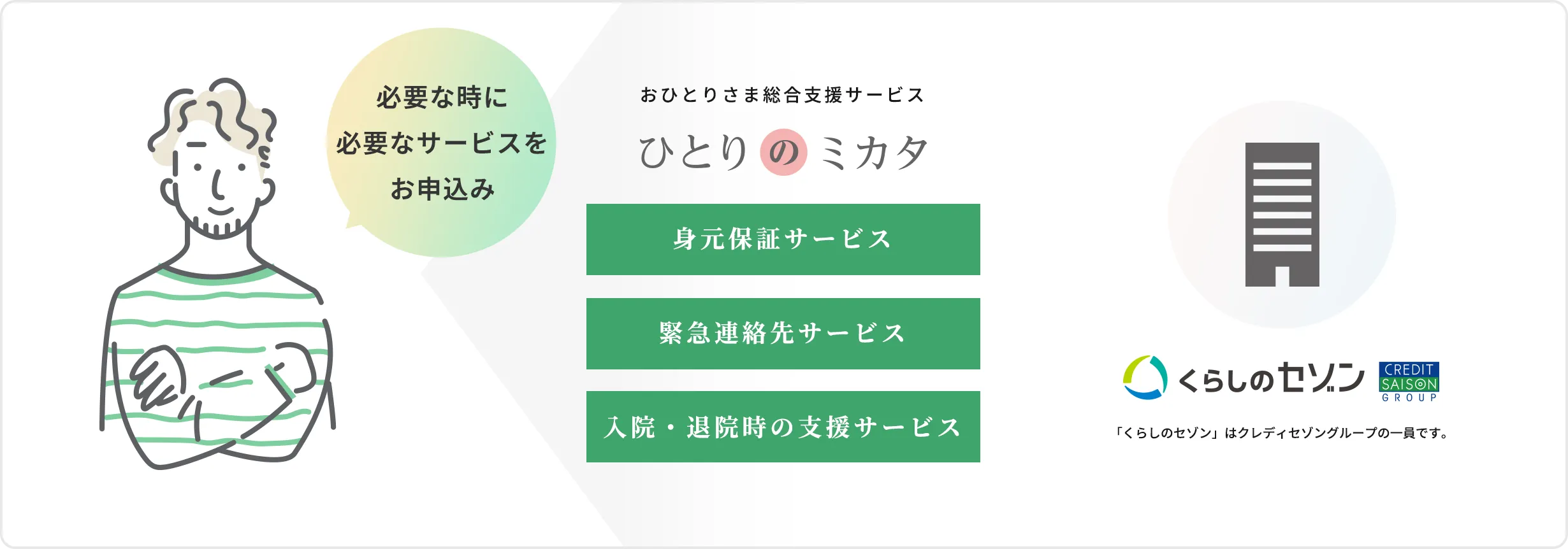 当社、株式会社くらしのセゾンが「身元保証人」をお引き受け致します。