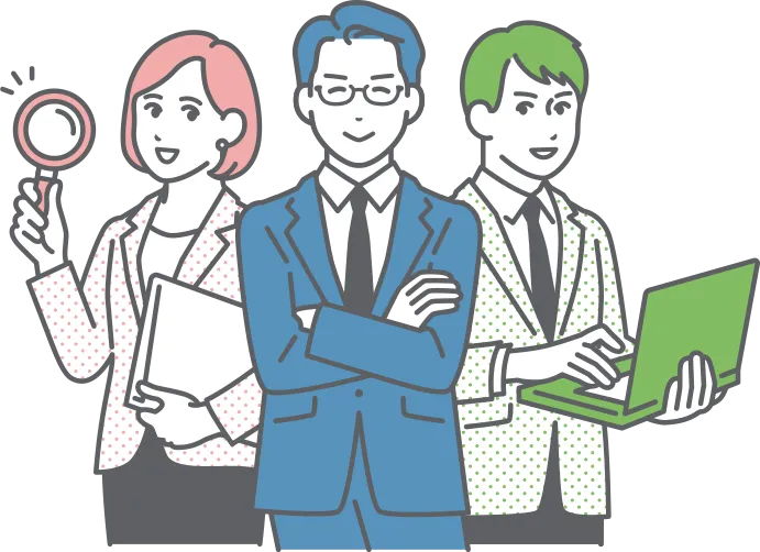 経験豊富な専任スタッフがご相談をお受けします。内容に応じて当社が選び抜いた信頼の専門士業事務所、専門サービス会社と提携し、チームできめ細やかにサポートします。